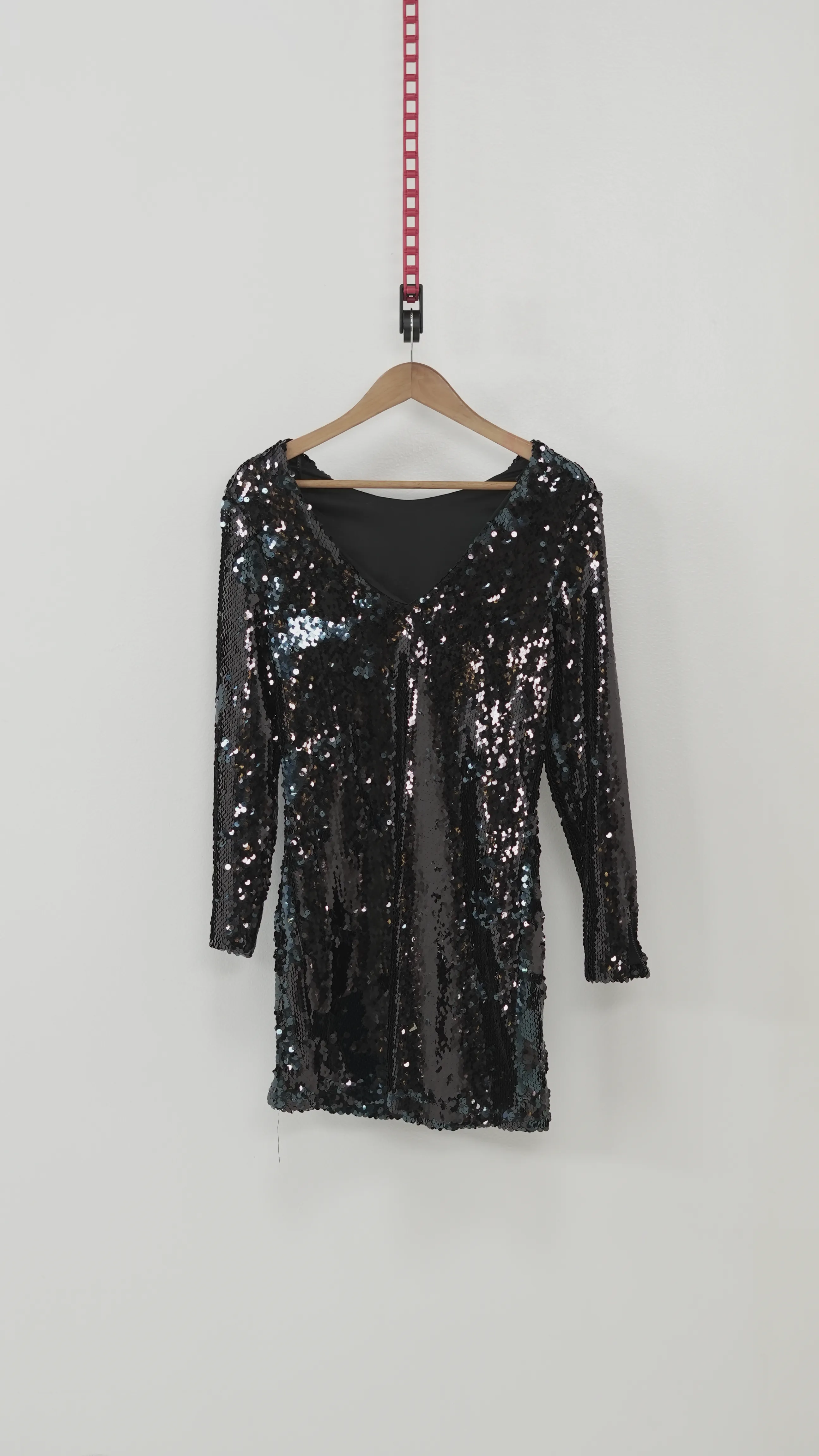 Black Long Sleeve Sequin Shift Dress