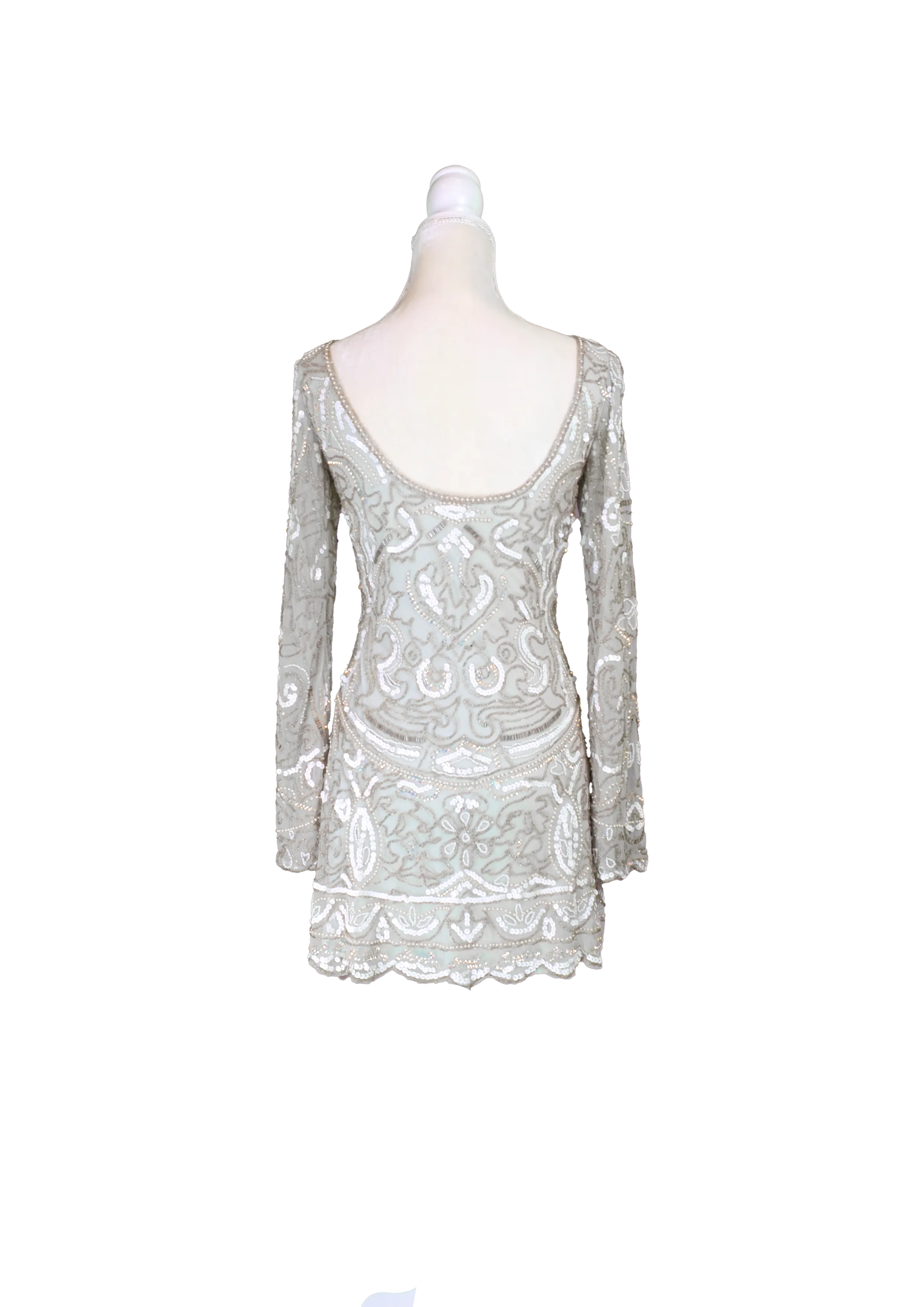Sage Green Sequin and Bead Long-Sleeve Mini Dress