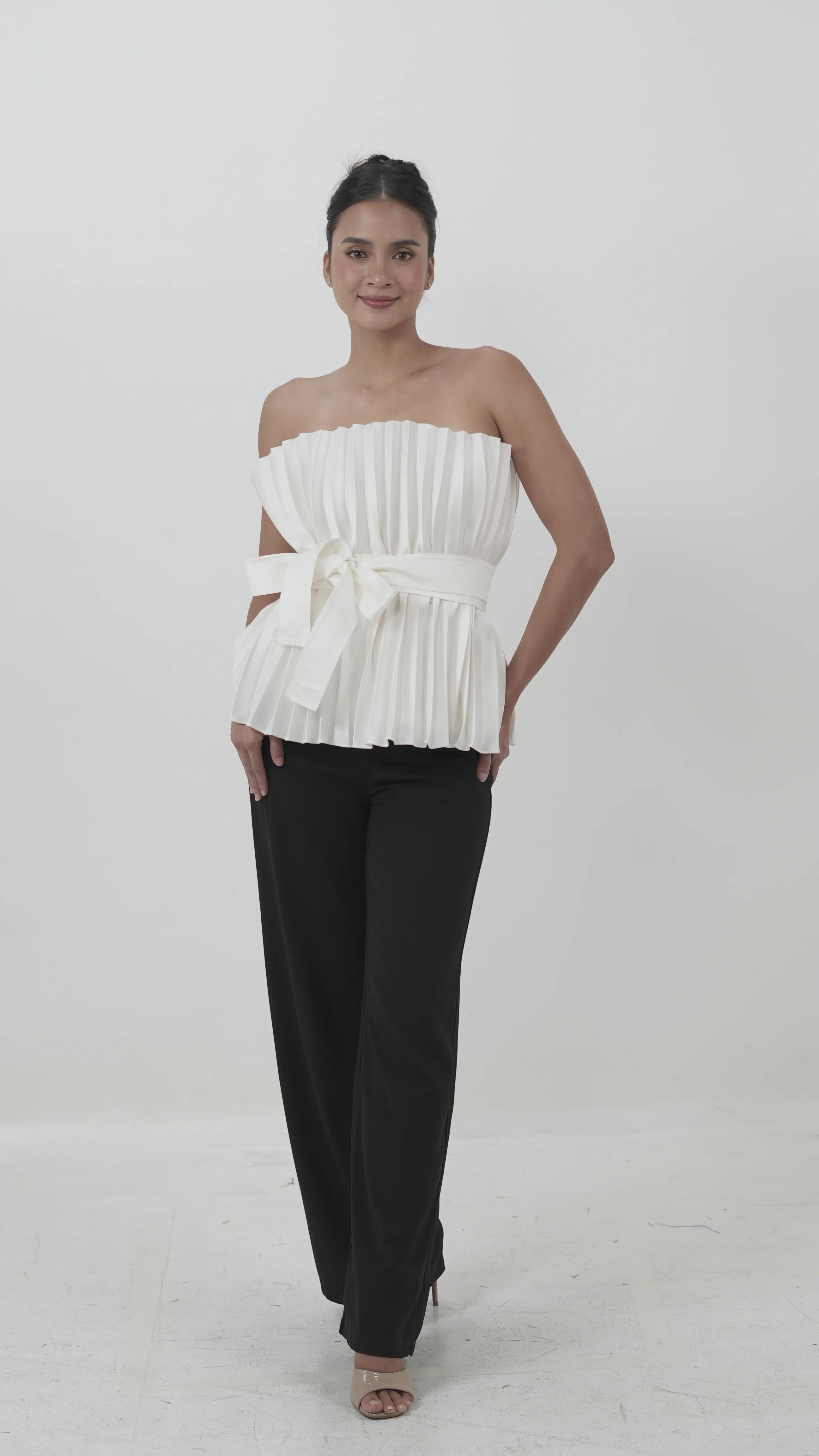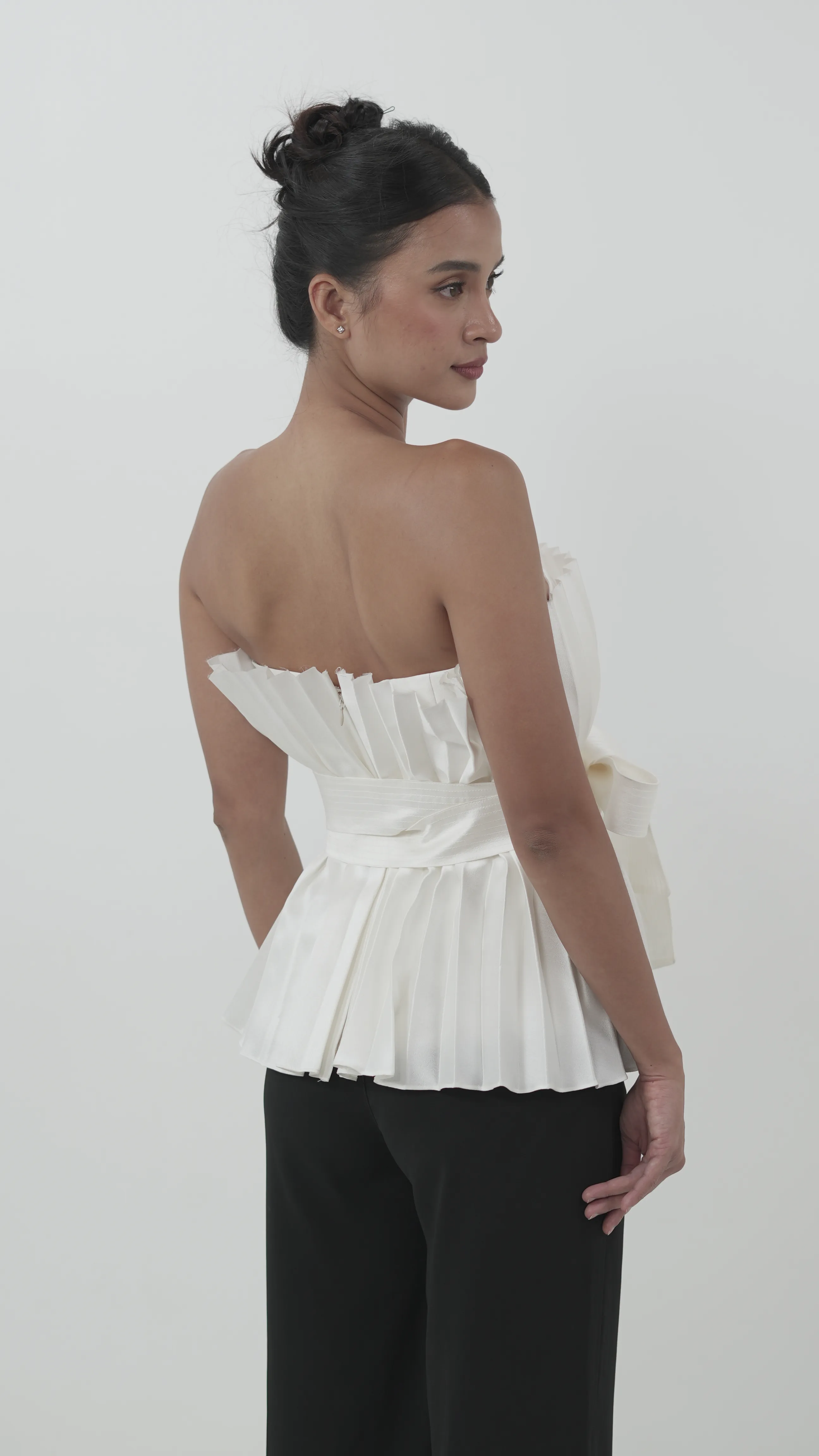White Strapless Pleated Top with Ribbon Belt